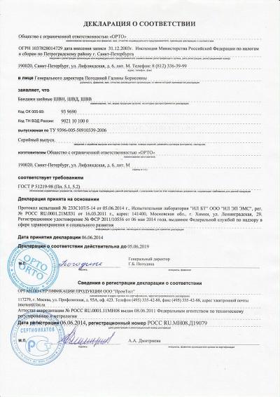 Шина-воротник шанца ШВВ ORTO, бандаж шейный для взрослых